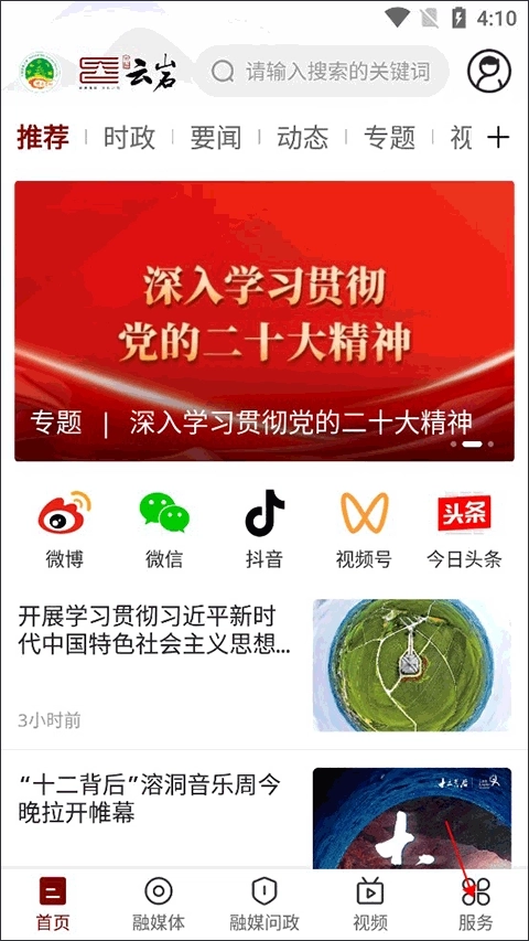 1、打开文昌云岩app,在app底部的菜单栏里找到“服务”选项,点击后进入便民服务列表。