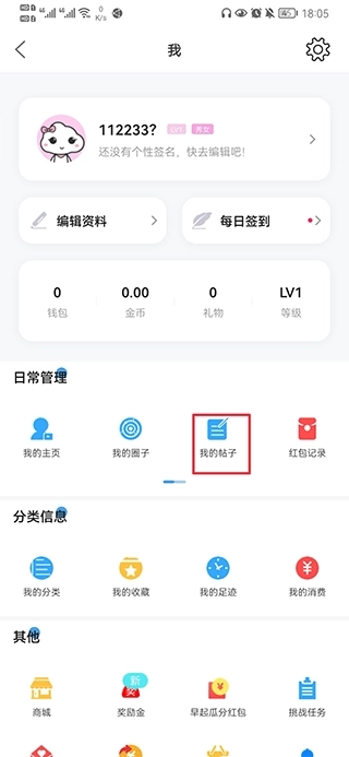 2、在日常管理当中找到我的帖子。