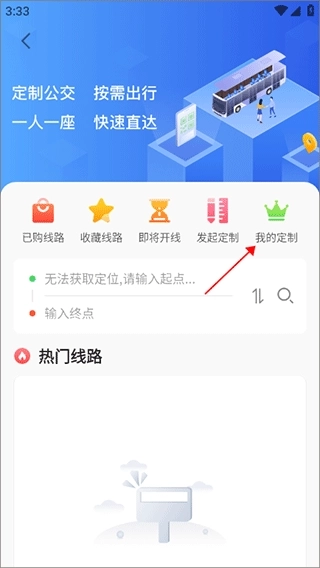 2、在弹出的新页面里,填写好出发地与目的地,接着点击“发起定制”按钮。