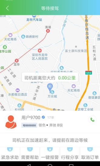 4.打开平台,您可以直接定位您当前的位置,然后进入终点呼叫汽车。