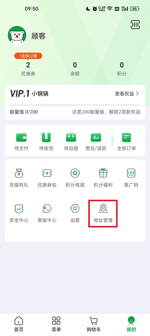 1、在本站下载软件并打开,进入首页后点击“我的”,找到“地址管理”选项,完善你的收货地址信息;
