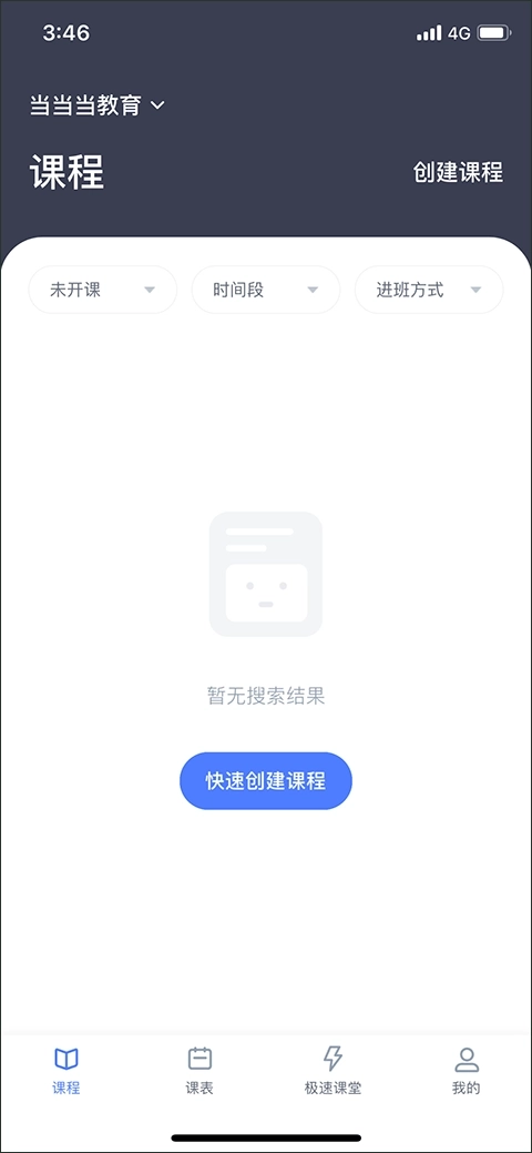 2、底部为主要功能板块:课程、课表、极速课堂、我的