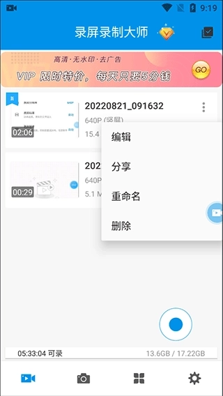 5、所有录制的视频都会显示在这里,你可以快速的进行分享,或者搭配软件内的视频编辑和压缩功能,为视频进行编辑。