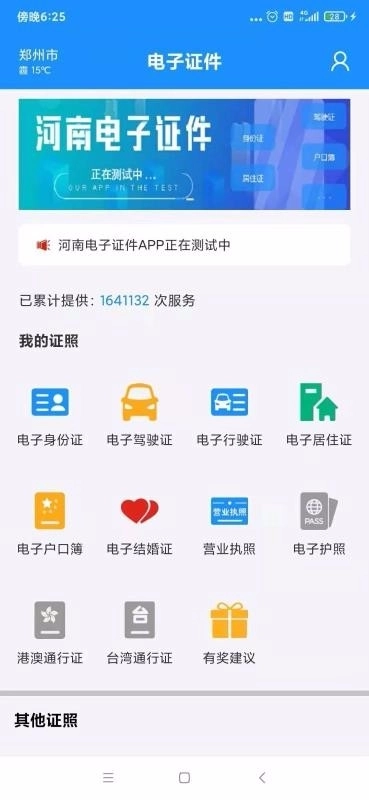 2、进入应用,就能看到我的证照信息