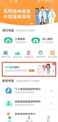 2、填写完毕后,即可返回首页点击HPV疫苗预约。