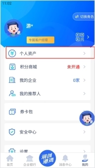 1、完成下载安装操作后,进入“我的”页面并点击个人资产选项
