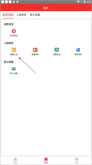 1、进入软件后在服务界面点击“我要入会”。