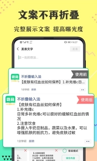 这是一款实用性很强的输入法应用,使用它的用户能够把各类广告以及较长的文字内容,借助复制粘贴的方式迅速分享到个人朋友圈;通过该软件复制的文字在发布至微信朋友圈时,不会出现文字折叠的情况。此外,这款软件还具备诸多强大功能,除了可以一键转发多张图片与多个视频外,用户还能利用它为自己的朋友圈设置专属签名。