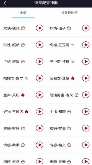 5、配音示例:提供抖音视频里热门配音员的样例,考虑得十分周到;