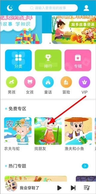 1、打开少儿故事app,进入主页登录,找到要下载的故事;