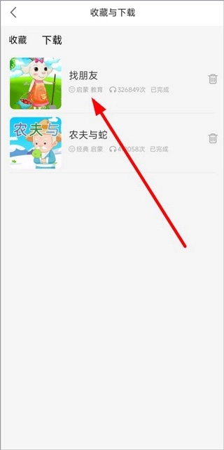 4、在收藏页面点击下载按钮,就能查看已下载的故事。