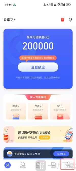1、第一步是打开手机上的宜享花应用,接着点击底部的“我的”选项。