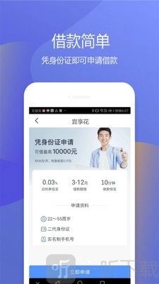1.借贷过程很简单,只需要一张身份证,并且借贷分三步完成。