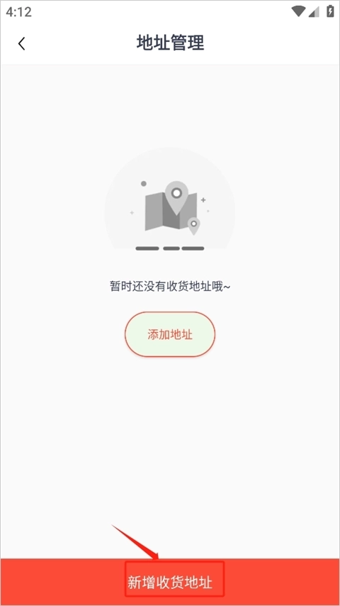 3、进入地址列表页面,点击底部的“新增收货地址”按钮。