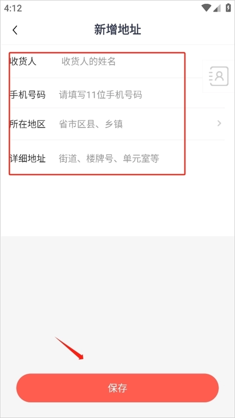 4、接着就能够填写收货地址的相关信息,点击右上角的保存按钮就完成了。