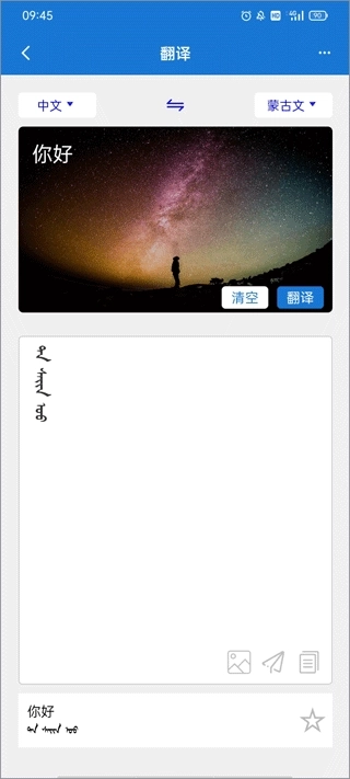 支持蒙古语汉语互译,还有英语、塔吉克语、俄语等多种语言翻译,翻译蒙文可以复制收藏,对在社交软件上使用蒙文翻译聊天、蒙文办公和内蒙古旅游中的沟通都非常方便。