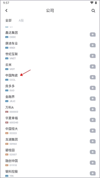 2、可以在搜索框中搜索你要添加的股票,也可以选择从这些列表中选择其中一个。
