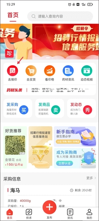 5、一键发布采购计划,让商家自荐带来的商品 ,轻松找到需要的中药材。