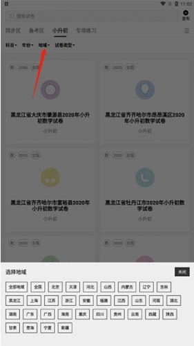 3、根据自己的需求,选择你想要题目类型的年份、地区和试卷类型。