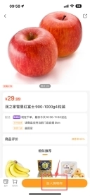 3、在苹果梨蕉商品列表页面,选择润之家雪里红富士900-1000g4粒装商品,进入商品详情页面。