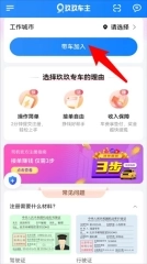 2.选择工作城市后点击“带车加入”,即可开启玫玖车主的入驻申请流程,操作简单快速。
