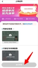 3.上传驾驶证及行驶证信息后点击“提交审核”,平台将尽快完成审核,助您顺利上岗。