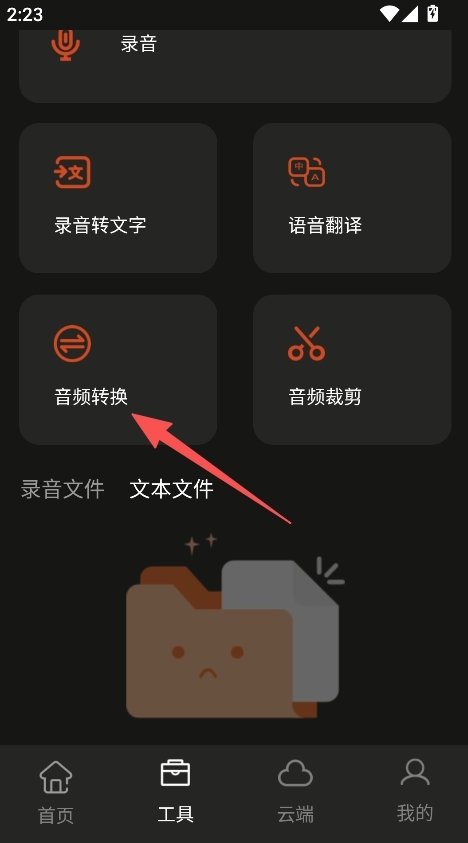 3、在工具板块,点击音频转换,可进行音频格式转换操作。