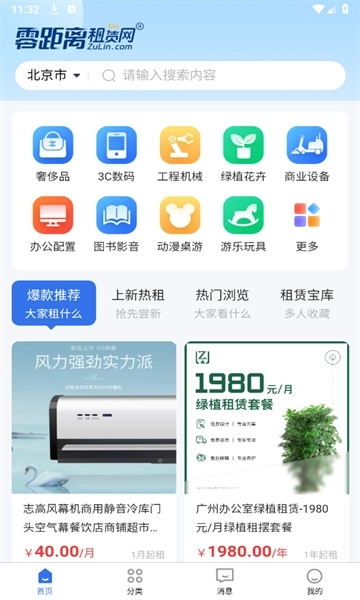 零距离租赁是一款支持万物租赁的手机应用平台,软件内提供海量品类的商品供用户挑选租赁,无论是电子数码产品,还是绿植花卉,都能在这里找到并完成租赁,功能全面且实用,有需求的话不妨来体验一下!