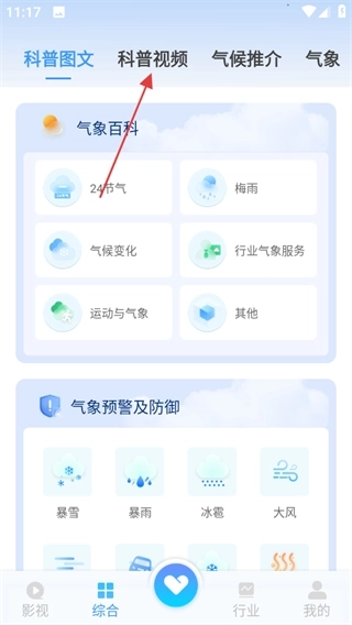 2、在综合板块,点击科普视频可查看气象科普视频内容。
