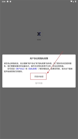 1、打开【新易租】应用,仔细阅读《用户协议》和《隐私政策》,确认无误后点击【同意并接受】按钮,即可进入应用主界面。