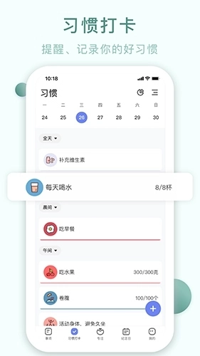 2、支持创建习惯打卡任务,每天完成后即可打卡,系统会自动生成你的专属打卡记录;