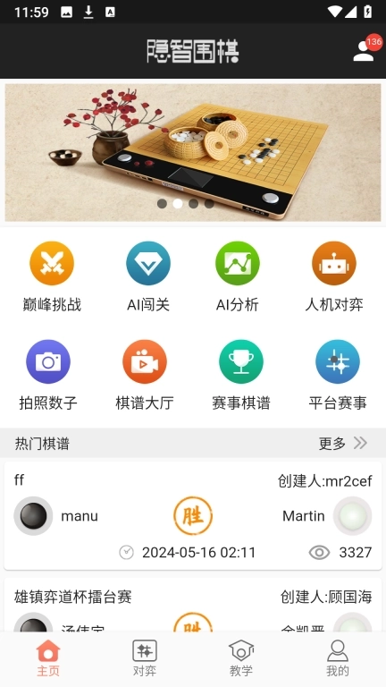 隐智围棋是一款融合围棋对弈与教学功能的综合服务平台,致力于为围棋爱好者打造优质的学习与对弈体验。平台既支持玩家间的实时对弈,也提供人机对弈模式,满足不同水平用户的练习提升需求。用户还能通过手机端随时观看赛事直播、学习围棋知识,轻松享受围棋带来的乐趣。