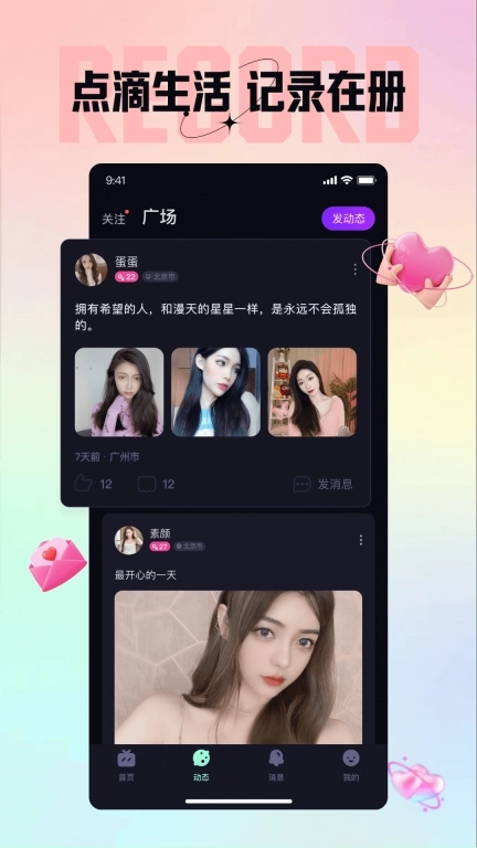 分享生活里的每一个小片段,把最真实的自己呈现给这个世界。说不定在点赞与关注的互动中,你就能遇到和自己志同道合的朋友呢~