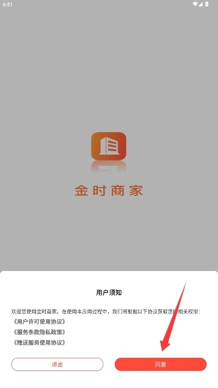 首次使用时,请仔细阅读平台的服务条款和隐私政策,确认无误后点击同意按钮,即可进入应用。