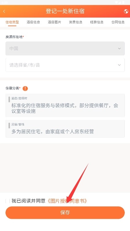 4、添加新房源时选择所在位置和住宿类型,阅读并同意条款后保存即可上线。