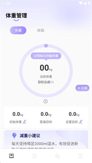 2、设置目标体重,每天记录体重数据,系统自动监测体重变化趋势。