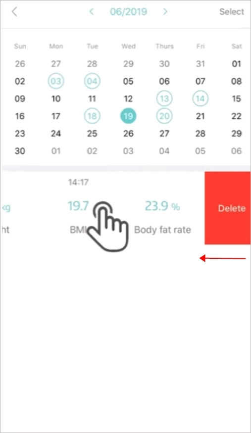 3、若要删除记录,可向左滑动需要删除的那组记录,接着点击【删除】按钮就可以了。
