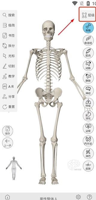 我们可以借助“层级功能”来实现模型的快速加载,具体做法是把人体的各个系统划分成不同类别,当点击其中某一个类别时,该类别下对应的一组模型就会随即加载出来。