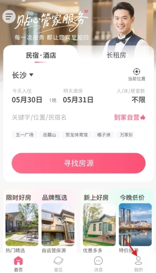 1、打开到家旅居,在软件主界面下方找到 “我的” 选项并点击进入个人中心。