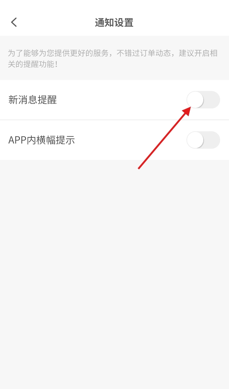 5、进入通知设置页面后,找到“新消息提醒”的功能开关,点击开启该开关,就能接收新消息通知了。