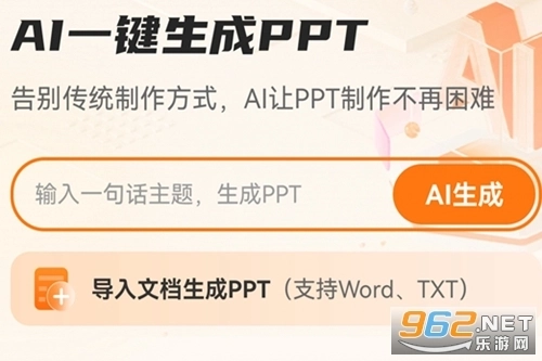 可以直接在输入框中输入主题,然后点击【AI生成】按钮,一键生成PPT。