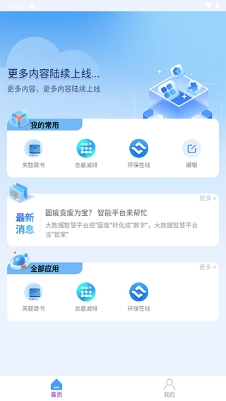 1、进入平台首页后,页面会显示“我的应用”板块,你可以直接点击其中的应用进行操作使用。