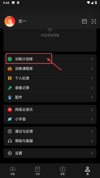 2、进入个人中心后,找到并点击训练计划库选项,即可进入训练计划库页面。