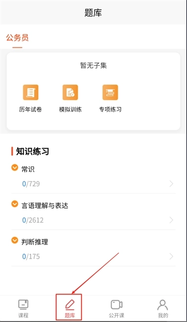 进入软件中考生就可以更换考试类型,能够在这里查找备考资源;
