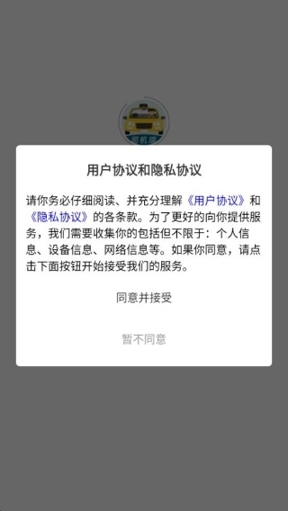 1、软件安装完成后启动,界面会弹出用户协议与隐私政策的提示,此时点击“同意”按钮即可。