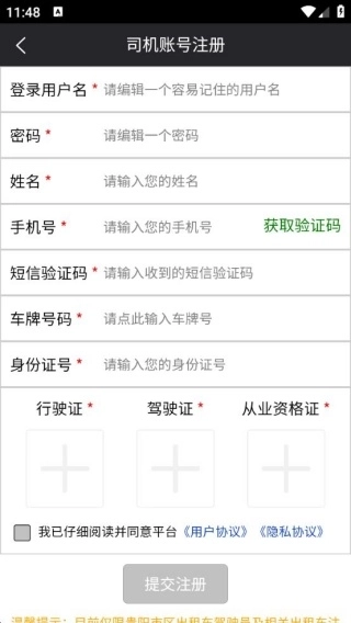 2、注册流程简便,通过短信验证就能快速登录使用,新手司机很容易上手。