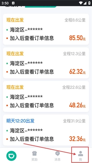 1、在订单页面,点击右下角的【我】按钮,即可进入个人中心。