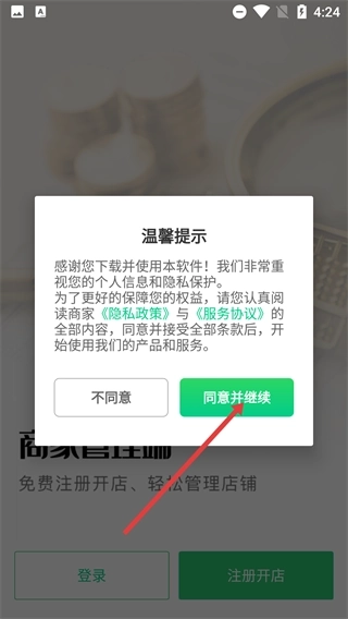 在使用本软件前,请务必仔细阅读商家的《隐私政策》与《服务协议》,只有点击【同意并继续】按钮,您才能正常使用本产品及相关服务。