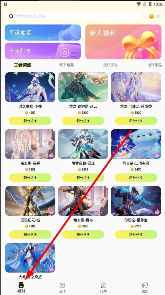 4.挑选心仪游戏对应的皮肤,接着点击【积分兑换】按钮就能领取。