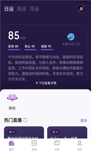 4.在直播互动环节提出星盘相关问题,即可获得关于个性与运势的即时解读,从而快速把握星盘里的关键信息。